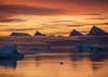 Pictured: Scoresby Sund, East Greenland, 2018 – icebergs derived from the Greenland Ice Sheet on the southern side of inner Scoresby Sund in East Greenland during a September sunrise.